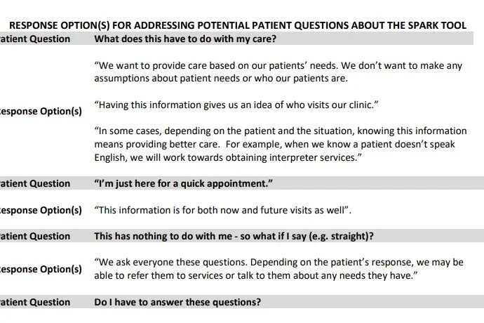 This resources offers practical guidance to help staff respond to potential patient questions regarding the SPARK Tool.