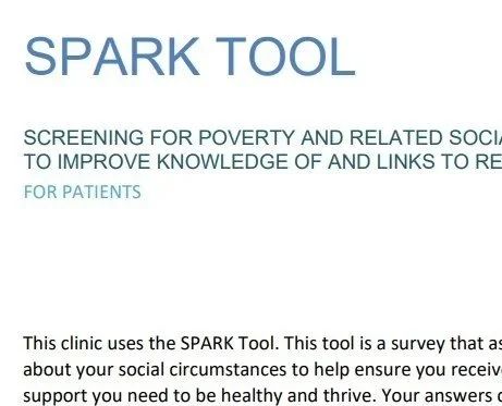 This page contains materials and resources to help you use the SPARK Tool for demographic and social needs data collection in your clinic or organization. The SPARK Tool and a majority of these resources were developed by SPARK Study Team members across Canada, patient partners, and Upstream Lab at St. Michael's Hospital, Unity Health Toronto.